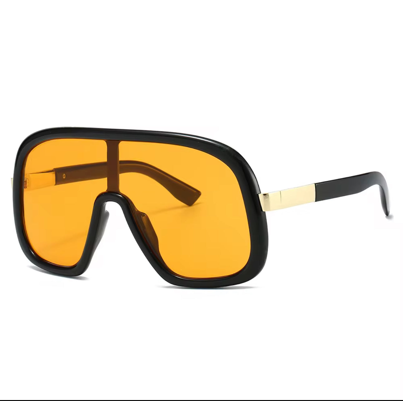 Oversized vintage sunglasses. One piece lens shield. Windproof eyewear. Women and men could wear. Easy to clean when dirty. Anti glare, HD visual, and arc comfortable to wear. Durable hinges. Choose from three styles. Black, black leopard, and black orange.